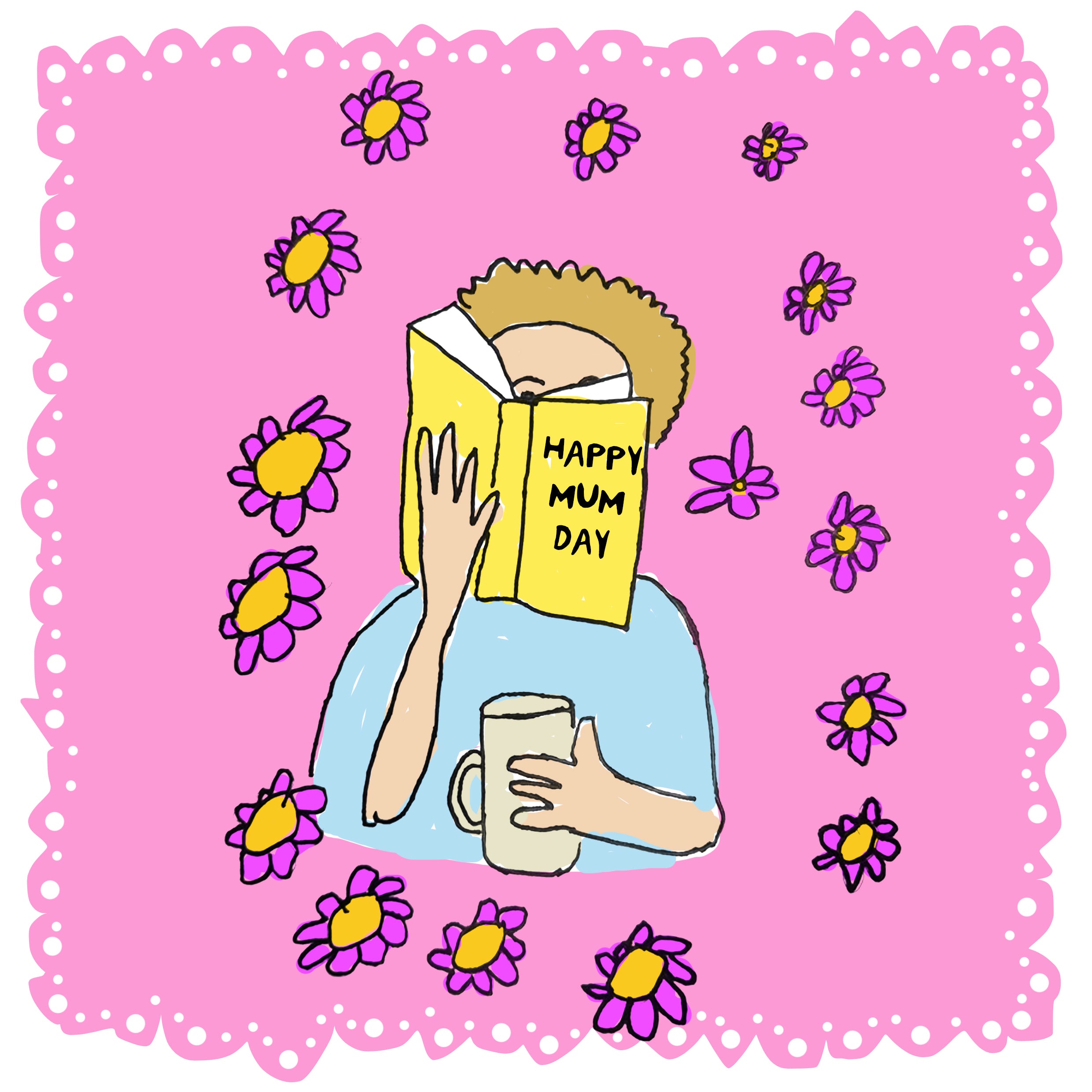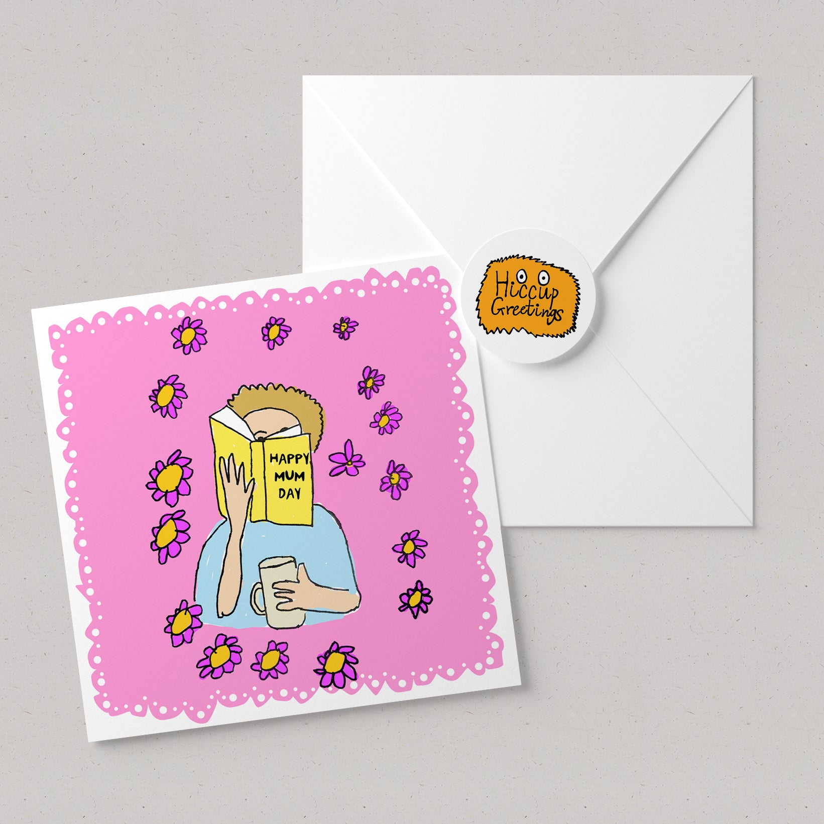 This lovely illustration is by Nicky, Typography by Alex, digital colouring by E19 graphic design group. An absolutely perfect card to send to a mum who loves to read.