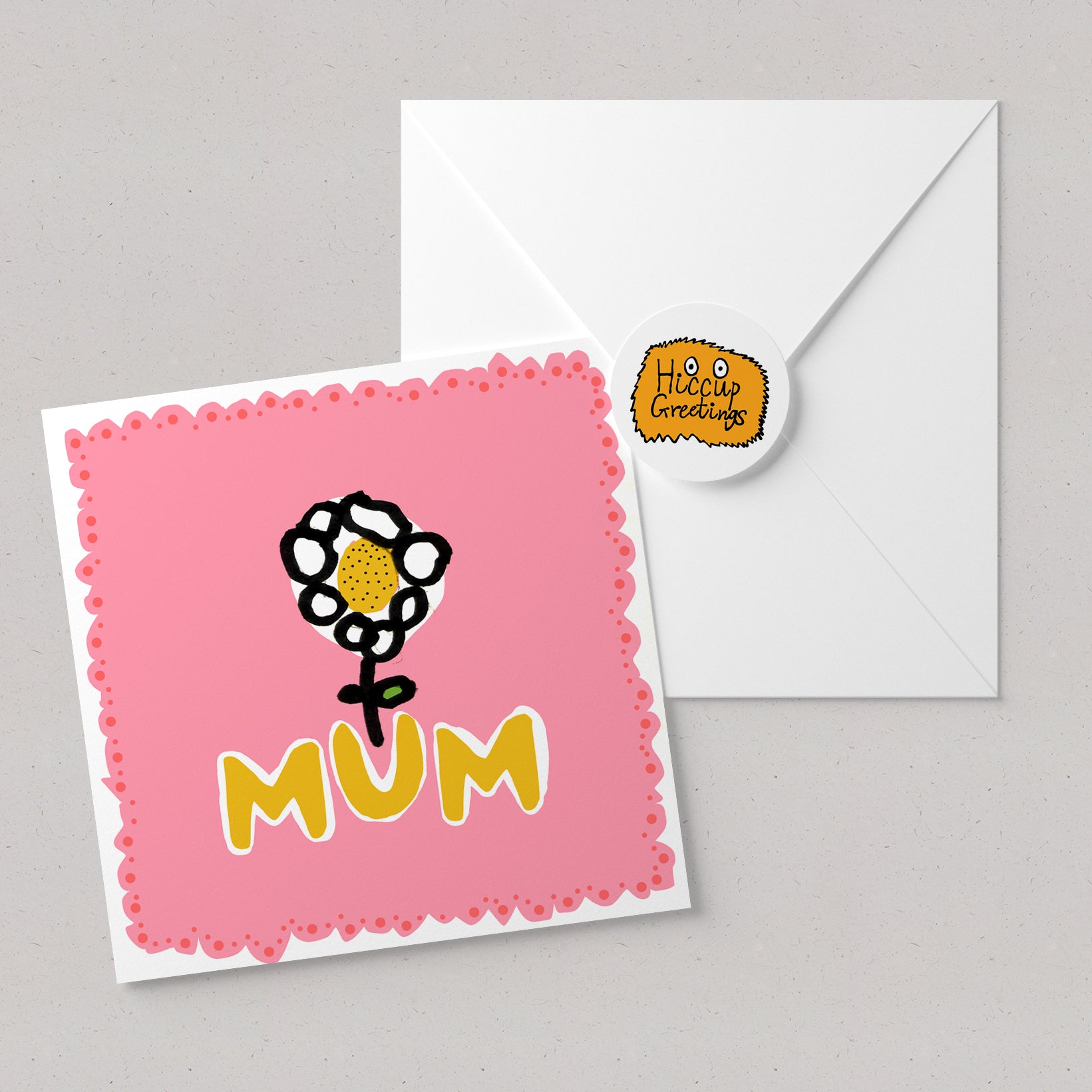 This lovely illustration is by Kaz, Typography by Alex, digital colouring by E19 graphic design group. An absolutely perfect card to send to a mum who remembers all those daisy posies she was presented with...