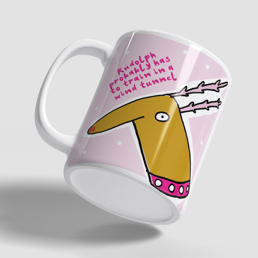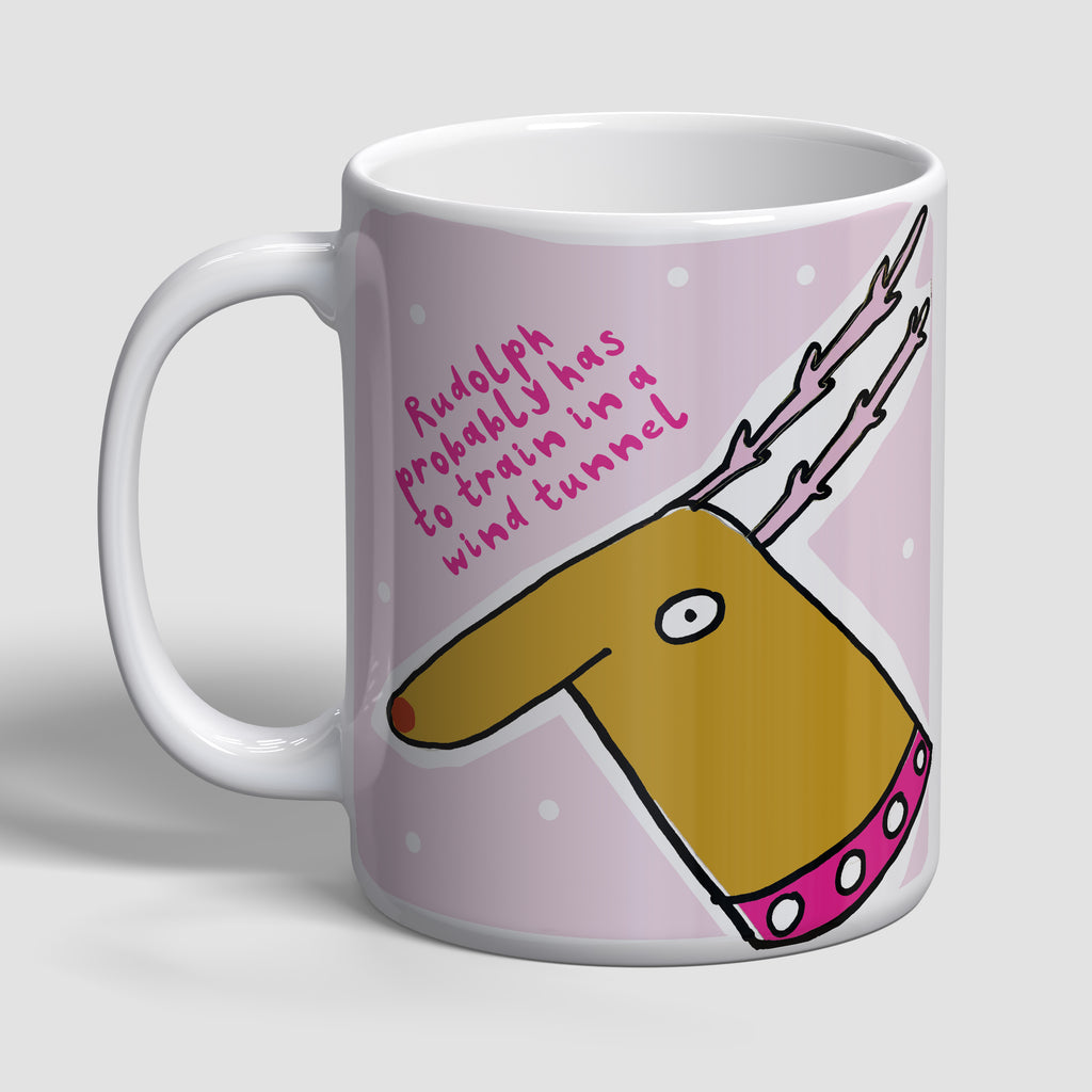 11oz Ceramic mug designed by James B, features his epic Reindeer in a wind tunnel illustration. Perfect for a secret santa gift or for wrapping and putting under the tree as an extra treat for family and friends.