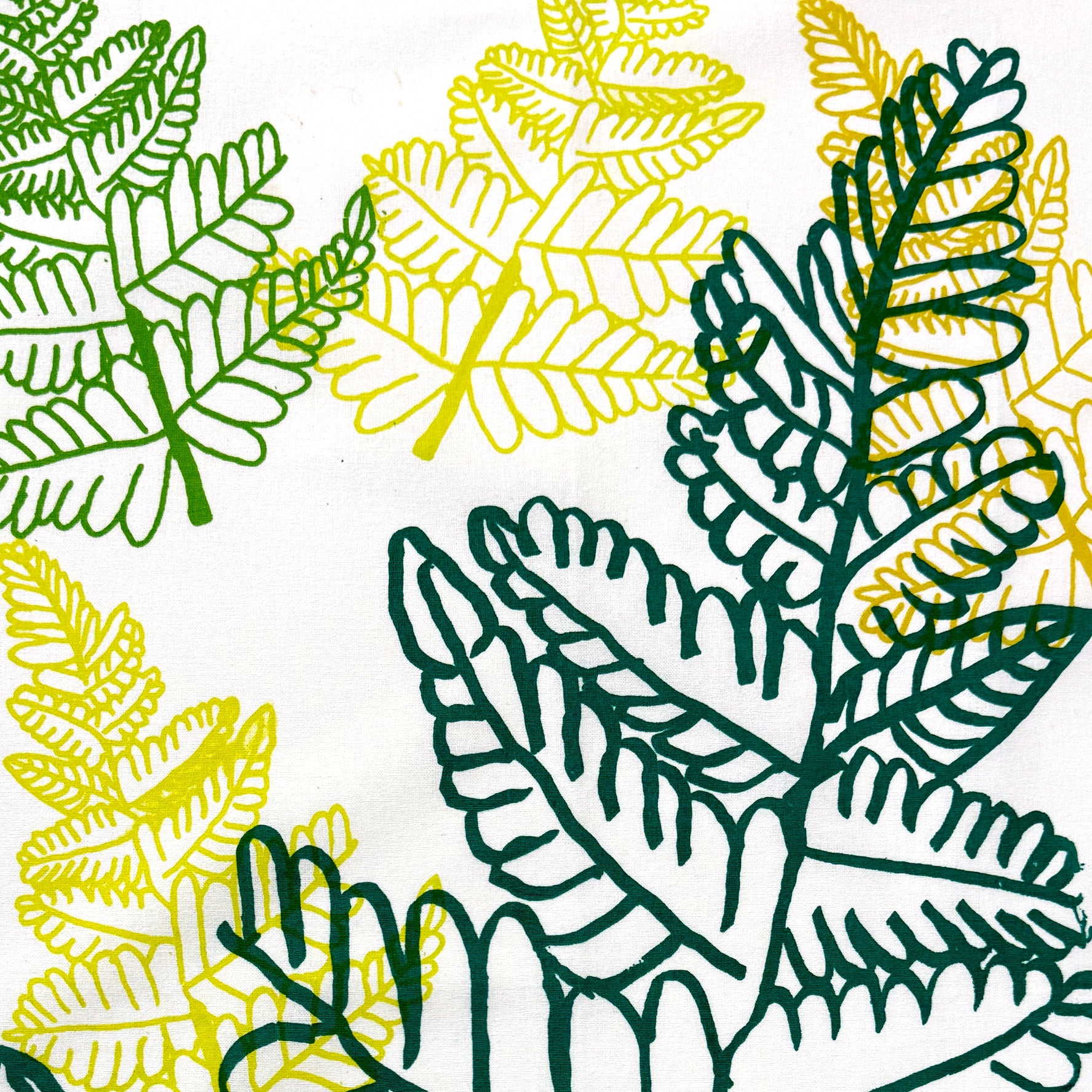 A truly lovely High-quality cotton tea towel featuring a variety of ferns, designed by Christopher and screenprinted by our team of young adults with disabilities at Post19.
