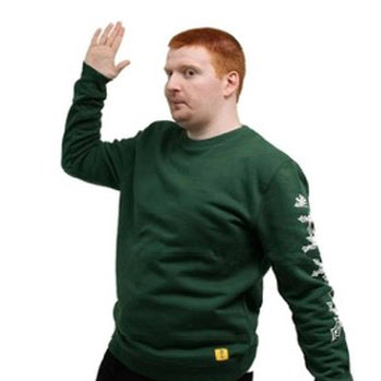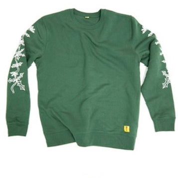 This jumper featuring an abstract holly design down the sleeves and a small yellow th3rd level logo stitched to the hem.