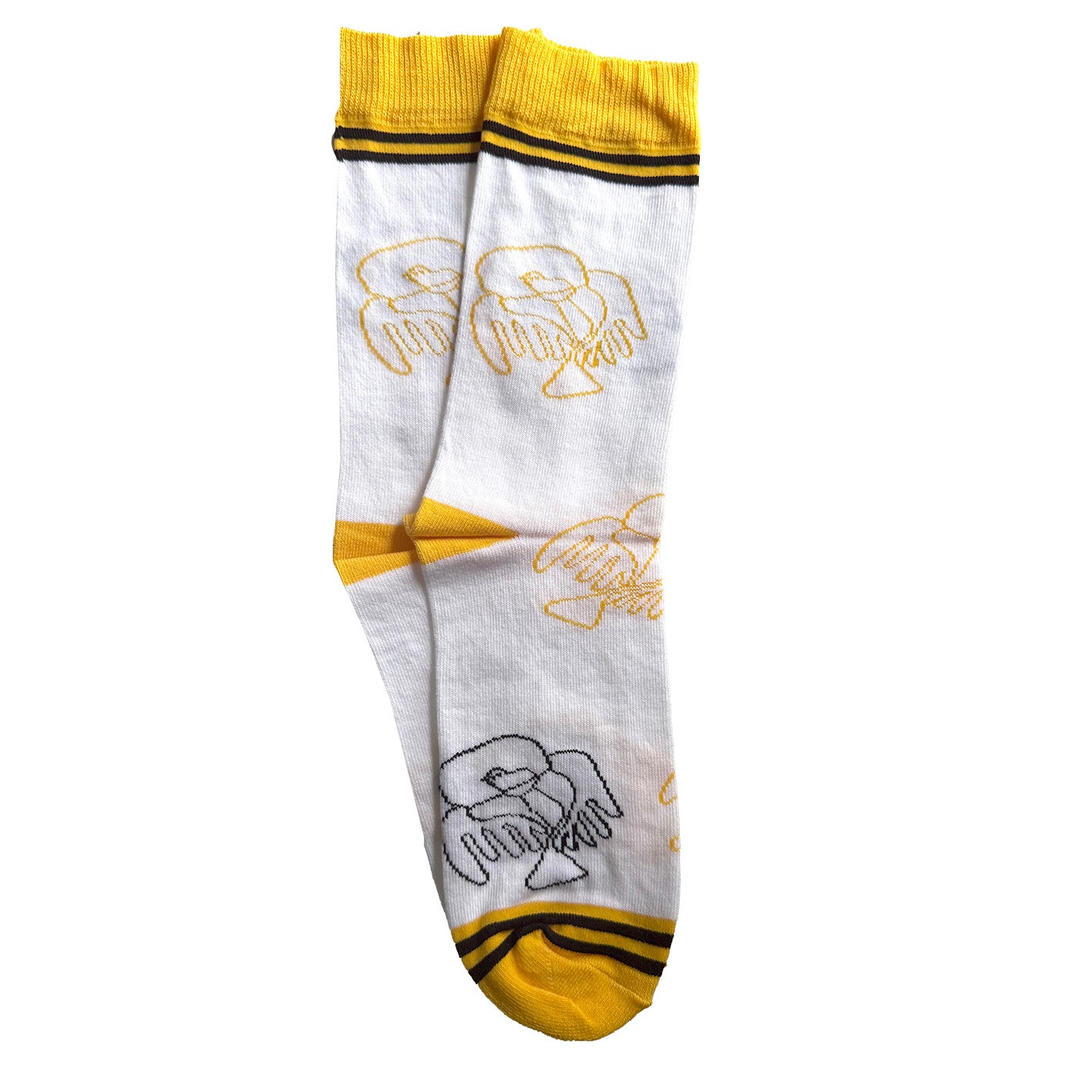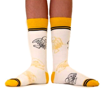Super comfy white and yellow socks featuring the 3rd Level logo and our fabulous gorilla-bird design (created by Post19 artist, Pete)